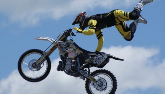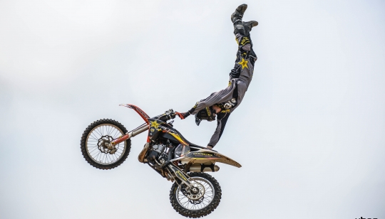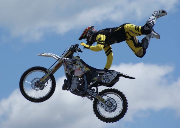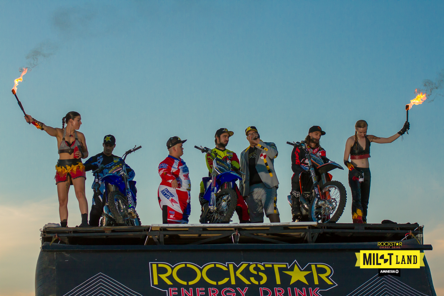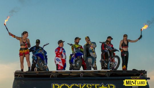 accompagné de 4 pilotes professionnels de motocross freestyle et de l'incontournable Pee-Wee le nain.